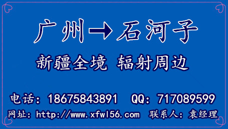 廣州到新疆石河子市物流廣州鑫富物流有限公司,電話:020-87461290 ,手機:18675843891 ,QQ:717089599 聯系人:袁經理,為廣大新老客戶提供優質廣州到新疆石河子市物流專線及配送服務,歡迎來電咨詢,鑫富物流公司在珠三角的深圳、佛山、珠海、東莞、中山、惠州、江門、肇慶都可以上門提貨,貨到新疆石河子市可以送貨到各鄉鎮及偏遠地區,讓客戶方便收貨,鑫富國家AAA物流企業–貨運一站式解決方案。