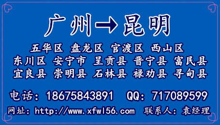 廣州到云南昆明市物流廣州鑫富物流有限公司,電話:020-87461290 ,手機:18675843891 ,QQ:717089599 聯系人:袁經理,為廣大新老客戶提供優質廣州到云南昆明市物流專線及配送服務,歡迎來電咨詢,鑫富物流公司在珠三角的深圳、佛山、珠海、東莞、中山、惠州、江門、肇慶都可以上門提貨,貨到云南昆明市可以送貨到各鄉鎮及偏遠地區,讓客戶方便收貨,鑫富國家AAA物流企業–貨運一站式解決方案。