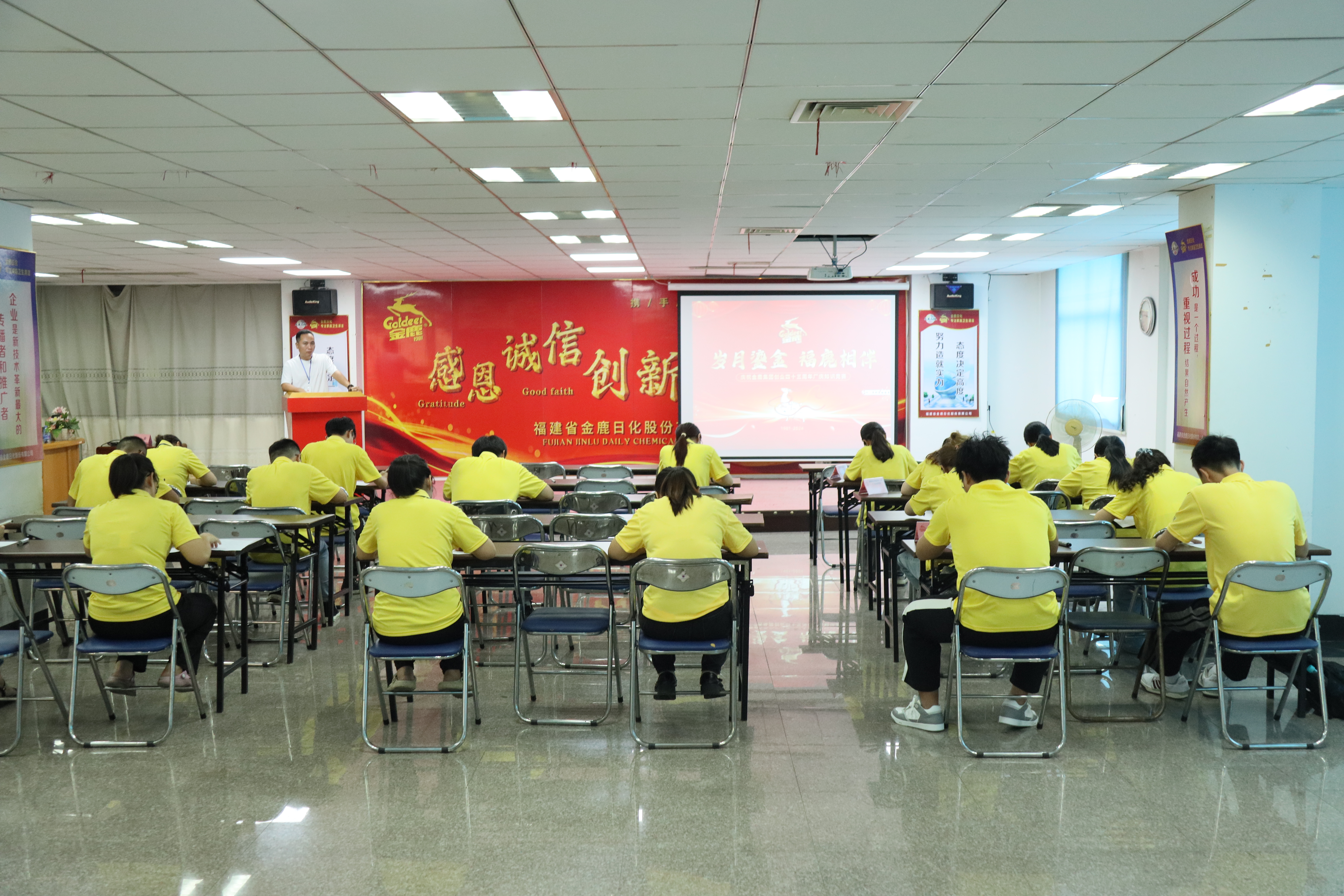 金鹿集團歷經風雨,拼搏奮進,于8月1日迎來了四十三周年的生日。為了激發員工的工作熱情,提升專業技能,增強團隊協作與創新思維,同時也為感恩全體金鹿人的辛勤付出,金鹿集團舉辦了“歲月鎏金·福鹿相伴”的廠慶系列活動,活動分為知識競賽、技能競賽及廠慶晚宴三個活動。