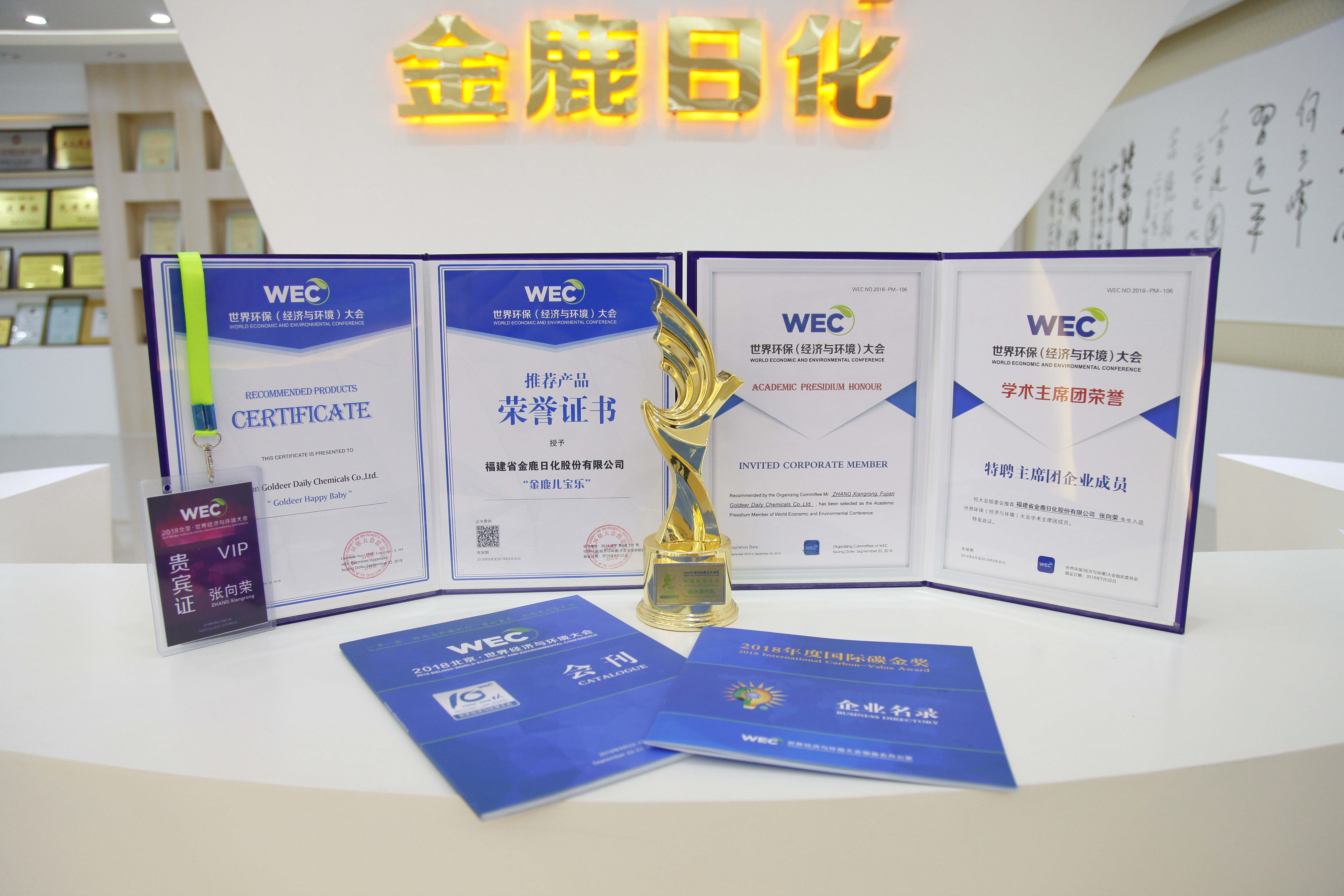 金鹿日化榮獲世界環(huán)保(經(jīng)濟(jì)與環(huán)境)大會國際大獎